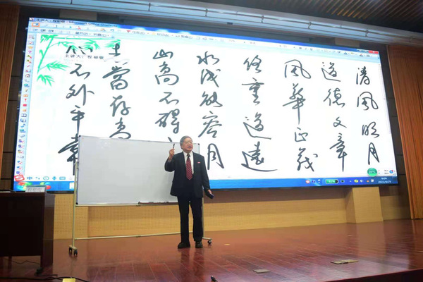 讲座中,程郁缀教授以通俗易懂的方式,沿着时间的河流向上追溯,从诗歌的时代、地域、作者、内容四个方面,分析了中华优秀传统文化的重要组成部分——诗歌,阐述孔子对中华民族精神、思想、文化的深远影响,引领我们在古典诗歌中寻觅和挖掘中国古老的人文精神脉络。举例介绍建安诗和六朝诗时,他指出“持之以恒,目标如一”方能滴水穿石,“好修为常,怀瑾报瑜”可成万事。讲到怀乡诗时,他强调同学们要牢记“土乃华夏热,月是故乡明。万里人生路,一颗中国心。”