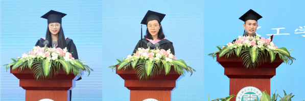 电子商务专业徐佳华,法学专业徐沁、计算机科学与技术专业冯承云作为优秀毕业生代表分别上台发言。