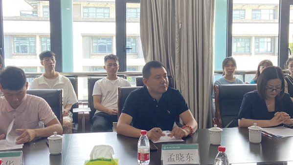 商学院相关负责人介绍了学院专业分布及培养方式等内容。并就此次暑期菁英训练营的情况做了介绍。此次暑期菁英训练营由学院和多家企业联合举办,共招收学员16位,训练时长为一周,课程内容包括短视频和直播教学两个方面,在培训结束后,学员可选择参与暑期实习积累实践经验,真正做到知行合一。