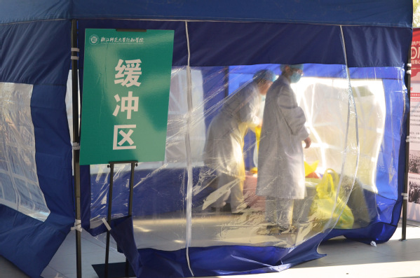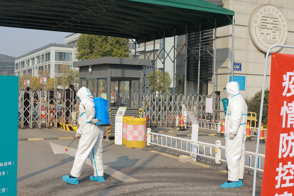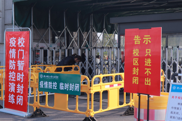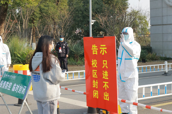 校门管理工作是我院疫情防控工作的重中之重,由安保办、后勤服务中心负责。指令下达后,校园西门、北门等入校通道及时关闭,仅保留南门作唯一进校通道。在唯一通行口设置专用通道,供校外疾控、公安、应急等工作人员通行,所有人员只进不出。在北门入口设置20米缓冲区,供相关生活用品、防疫物资进校,由专人专程负责登记管理,同时设专人做好缓冲区消毒工作。