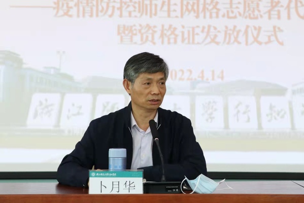 卜月华对各级网格志愿者在新冠疫情防控工作中发挥的作用给予充分肯定并表示衷心感谢。为持续做好疫情防控工作,卜月华强调,一要提高政治站位,把疫情防控作为当前首要政治任务来抓,把责任扛在肩上,放在心上,密切关注师生的身体健康,做到守土有责、守土负责、守土尽责;二要严格落实学院疫情防控工作方案和相应要求,紧盯每个环节,把守每个关口,关注重点人员;三要教育引导广大师生从自身做起,科学有效防控,形成人人防控、及时防控、处处防控的网格化工作群;四是落实网格具体责任人管理责任,进一步细化各环节工作措施。
