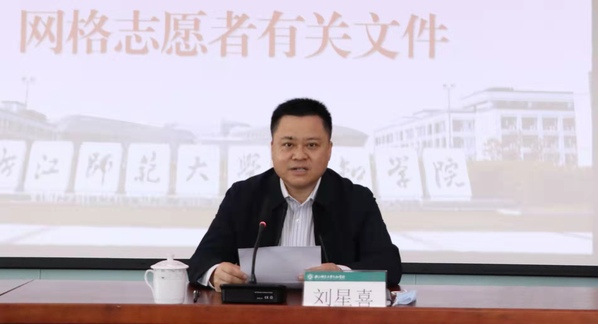 4月14日上午,为充分调动网格志愿者工作的积极性、主动性和创造性,进一步压实各级网格志愿者责任,学院在图书馆学术报告厅举行疫情防控师生网格志愿者代表座谈会暨资证发放仪式。学院院长卜月华、党委书记刘星喜出席会议。党政办、人事部、学工部等部门负责人、各党总(直)支书记,部分师生网格志愿者代表参加会议。会议由党政办主任、防控办副主任蒋芬君主持。