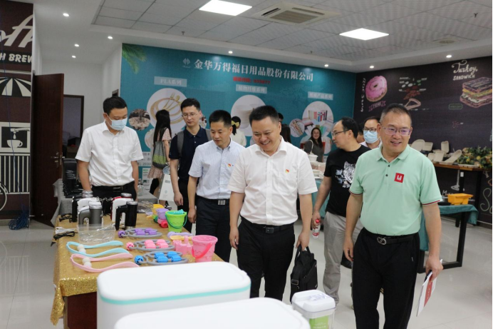 随后,同行人员赴金义跨境电商产业园,开展访企拓岗促就业,人才引介助发展主题党日活动,在万得福日用品股份有限公司,学院领导与金东区委组织部、万得福企业负责人、行知毕业生代表展开座谈。
