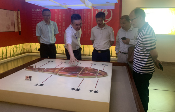 卜月华一行受到金华火腿行业协会会长、金字火腿股份有限公司总工程师马晓钟的热情接待。马晓钟带领大家参观了中国火腿博物馆和世界火腿博物馆,回顾了金华火腿产业的发展历程、制作技艺和文化传承。据介绍,金字火腿股份有限公司是专业生产特色肉制品的现代化食品加工企业,主要生产金字金华火腿、巴玛发酵火腿、金字香肠、金字酱肉等肉制品。2010年12月在深交所中小板上市。