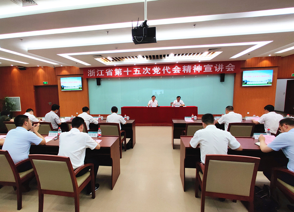 邢志宏指出,浙江省第十五次党代会的主题是“高举习近平新时代中国特色社会主义思想伟大旗帜,忠实践行“八八战略”,坚决做到“两个维护”,在高质量发展中奋力推进中国特色社会主义共同富裕先行和省域现代化先行”。省党代会明确了推进“两个先行”的思想指引和行动指南,擘画了未来五年浙江发展的战略方向、战略目标、战略任务,标注了浙江新的历史方位和奋斗坐标,具有重大的政治意义和战略意义。他从“新成就新起点、新指引新遵循、新目标新任务、新党建新要求。”“八个新”来解读省党代会精神要义。系统总结回顾9个方面的历史性成就和8个方面规律性认识,强调要深刻理解把握“5大战略指引”,牢牢把握“11方面重要遵循”。
