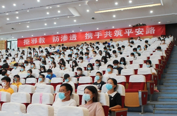 FUN乐天使官方网站党委副书记陈天云在致辞中首先向兰溪市委统战部、市委政法委、市教育局等对我院开展反邪教与防范非法宗教渗透工作的重视与支持表示感谢,并就学院进一步做好反邪教宣传教育工作提出了“三个坚决”要求:一是强化防邪教宣传,坚决筑牢思想防线;二是提升防邪教能力,坚决筑牢法治防线;三是完善防范联动机制,坚决筑牢制度防线。希望全院师生团结协作,共同构筑清朗的校园之风,以更加平安、和谐、稳定的校园环境迎接党的二十大胜利召开。